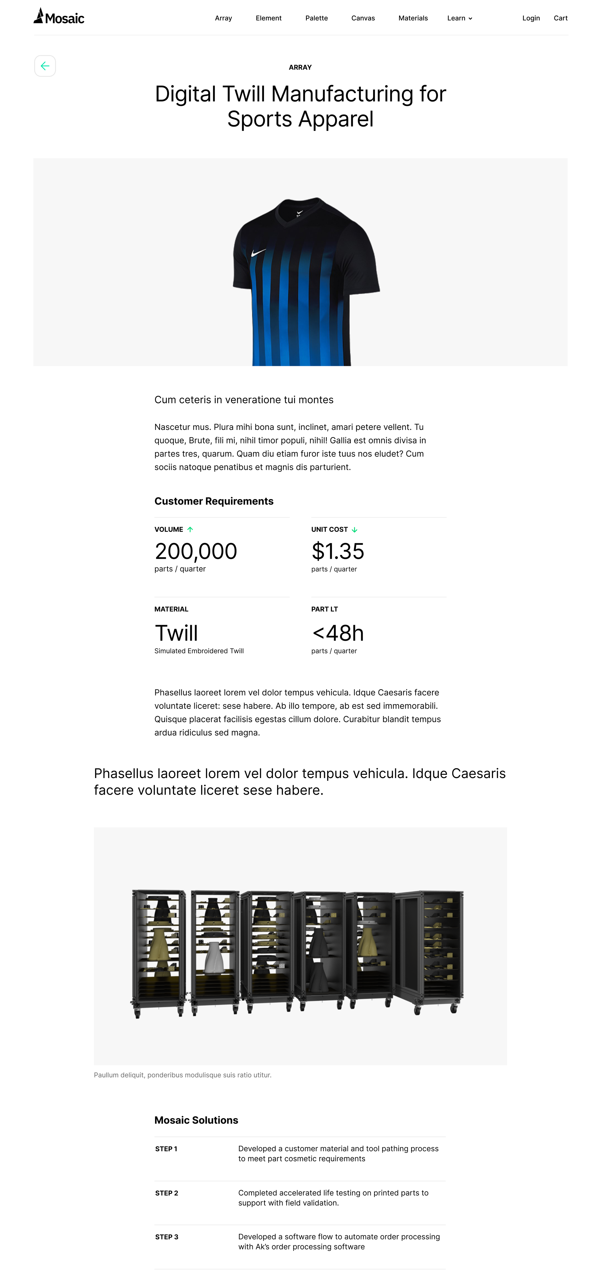 Mosaic MFG needed a new site design and brand refresh for the launch of their new line of 3d printers. I worked closely with their engineering teams to produce a number of high quality 3d assets of the new products that we featured throughout the new Shopify e-commerce site.